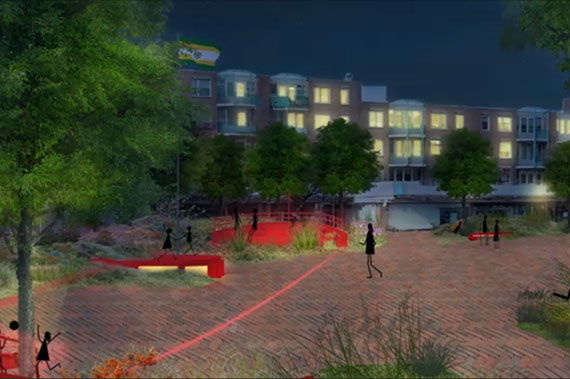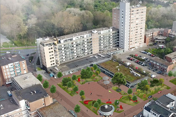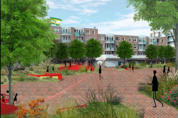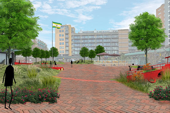 The concept design "Scheepsduin" draws on the unique characteristics of Hoek van Holland. This coastal town in South Holland is located on the northern bank of the Nieuwe Waterweg, where it meets the North Sea. The name Hoek van Holland is derived from the designation for the southernmost dune ridge of Holland. The landscape of Hoek van Holland combines natural elements, such as dunes, with the man-made maritime landscape that has developed over history. This led to the question: can Brinkplein function as a “dune landscape” where people can come together in the greenery, meet each other, find shelter, and enjoy the surroundings? The dunes serve as a metaphor for a natural green space that provides protection—a place to linger, play, meet others, and relax. Not only the dunes, but also the maritime history of Hoek van Holland has been incorporated into the design. This history is closely linked to shipping in the area. In and around Hoek van Holland, the man-made landscape and nature come together. From the square, the characteristic hilly, vegetated dunes are visible, providing shelter, greenery, and a pleasant gathering space. Viewed from above, the contours of a ship can be seen in the landscape, intertwined with the dune landscape. Parts of the ship rise up from the dunes, while other sections are submerged in the square. This symbiosis between the emerging hills of the dunes and the parts of the ship that rise from the landscape emphasizes the maritime identity and history of Hoek van Holland. The design concept "Scheepsduin" was developed by Arttenders and visual artist Marjan Laaper, in close cooperation with the residents of Hoek van Holland and the Municipality of Rotterdam.